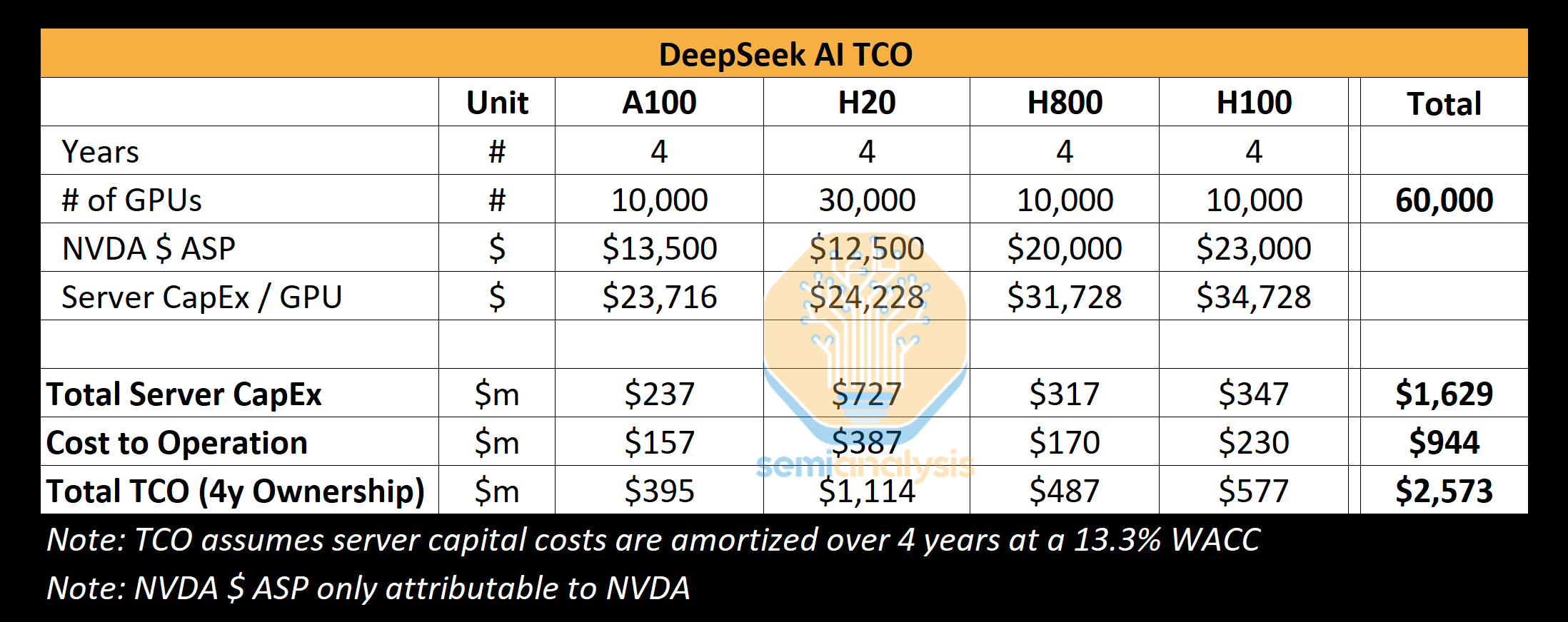 Next, the money spent on acquiring hardware included sourcing 50,000 NVIDIA Hopper GPUs, which include 30,000 H20s, 10,000 H800s, and 10,000 H100s, along with 10,000 A10s. This is in stark contrast to the 2,048 lower-powered NVIDIA H800 GPU chips that were initially claimed.